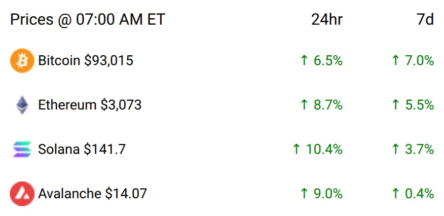 Crypto Market Rebounds as Bitcoin Surges Past $93K